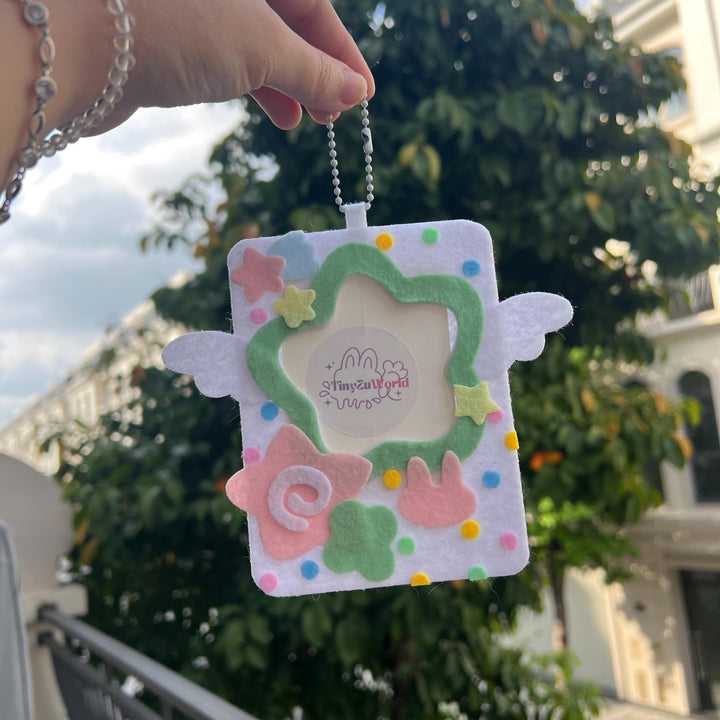 Crafted with love from soft felt, this unique card holder features an ethereal angel-inspired design that blends whimsy and charm. Its delicate pastel colors and wing details create a fairycore look that feels both magical and timeless.