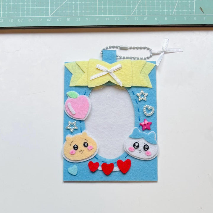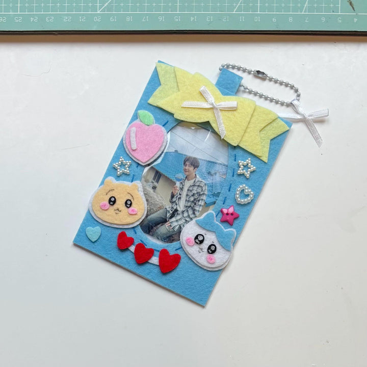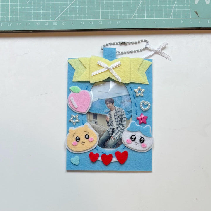 Handmade Felt Card Holder: Kawaii Photo Display with Metal Chain