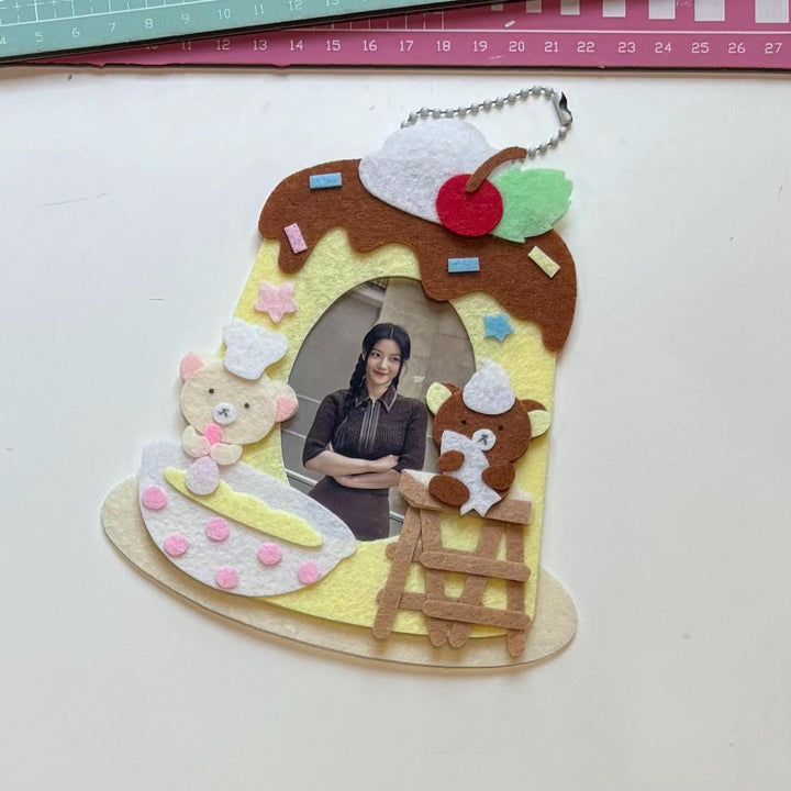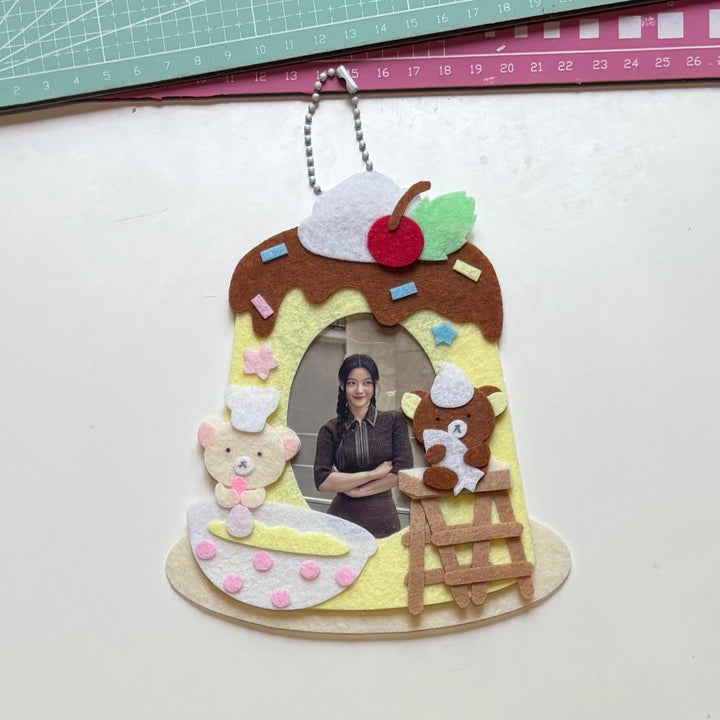 Add a dash of sweetness to your collection with this handmade felt card holder, designed in an adorable dessert theme! Crafted with durable stiff felt and decorated with kawaii bears, sprinkles, and a cherry-on-top pudding design, it’s the perfect way to display your K-pop photocards, Polaroids, or mini prints.