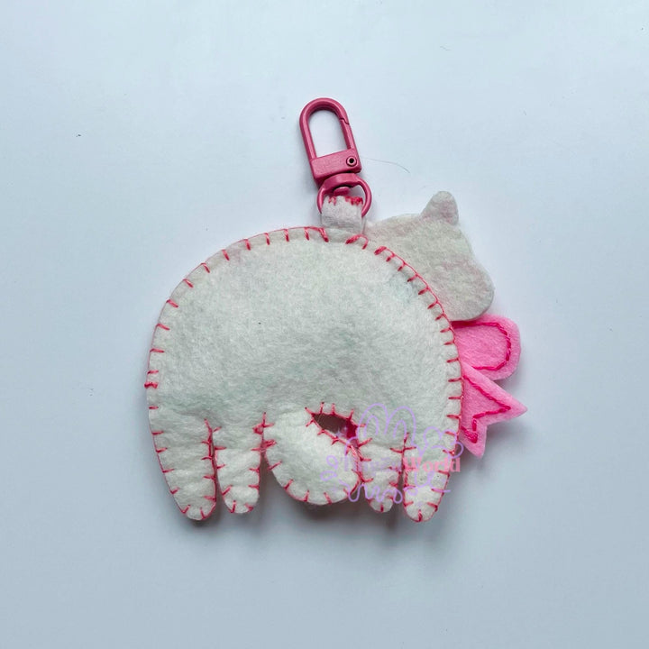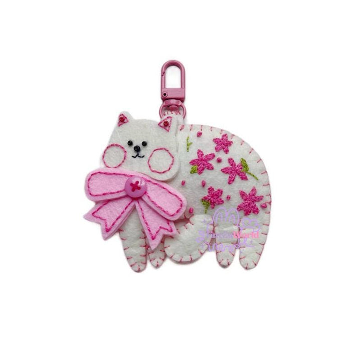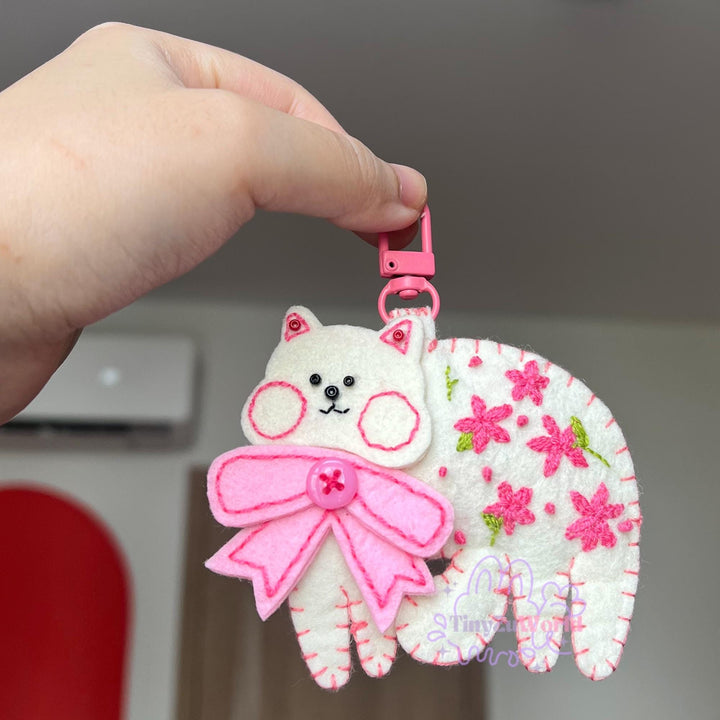 Handmade Felt Cat Keychain: Pink Floral Design