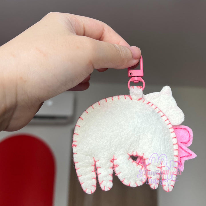 Add a touch of charm to your keys, bags, or workspace with this adorable handmade felt keychain! Featuring a sweet pink floral cat design, complete with tiny accents like a bow and flower, this piece is full of personality and warmth. The soft pink and white tones make it perfect for lovers of all things cute and cozy.