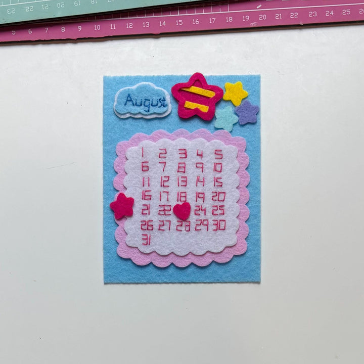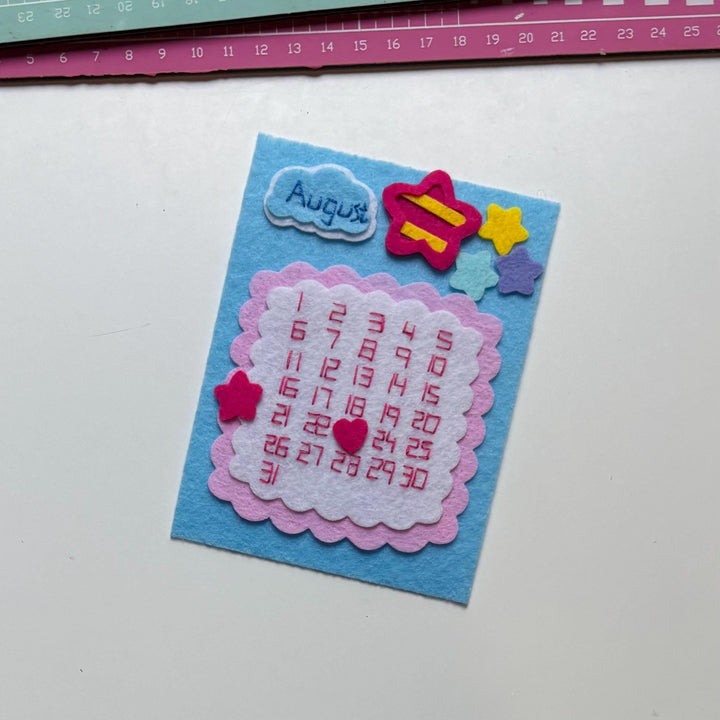 Add a pop of color and charm to your desk, planner, or scrapbook with this handmade felt calendar card! Each card is crafted from soft, durable felt and beautifully stitched with bright numbers and playful embellishments.