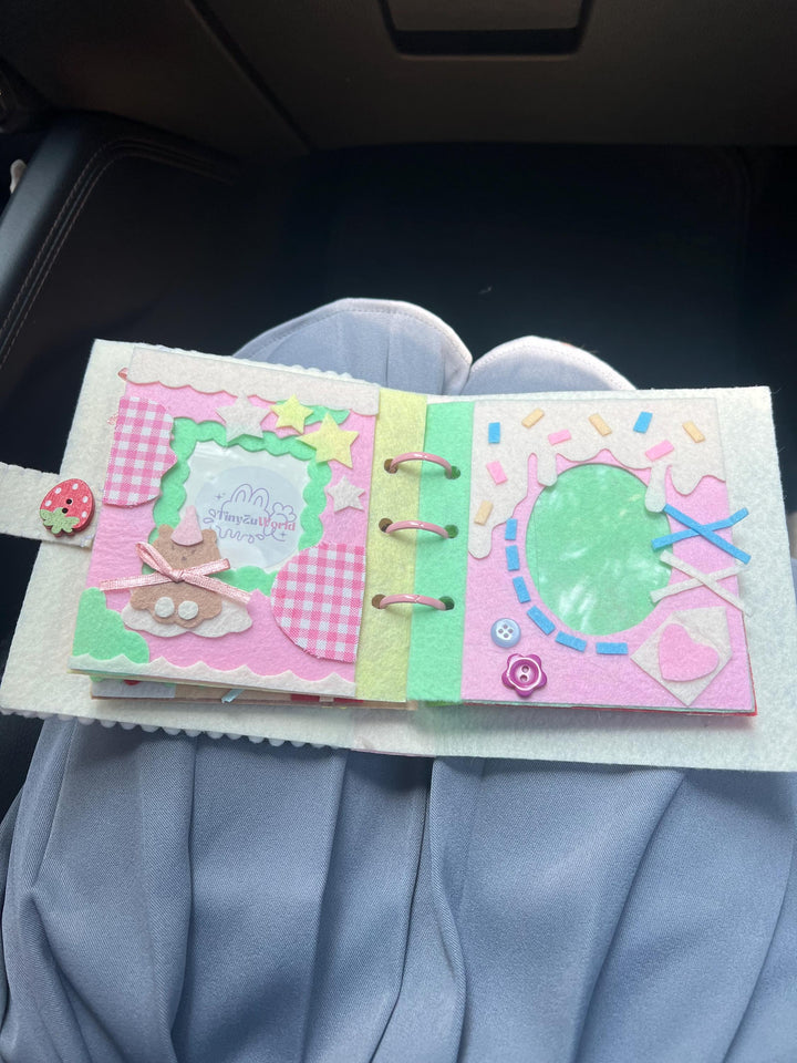 Capture your sweetest memories in this charming handmade felt photo album, crafted with care from hard, high-quality felt. With its pastel colors, cozy texture, and playful design, this mini album is perfect for storing Polaroid photos, photo booth strips, or small prints of your favorite moments.