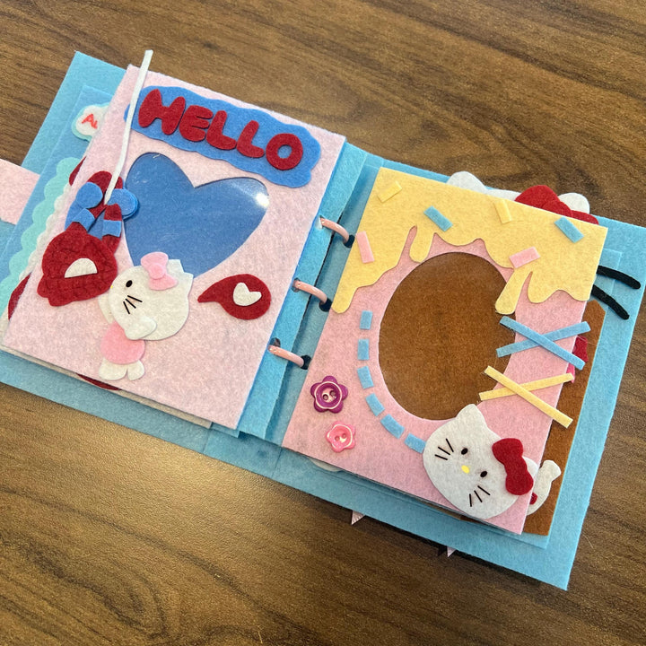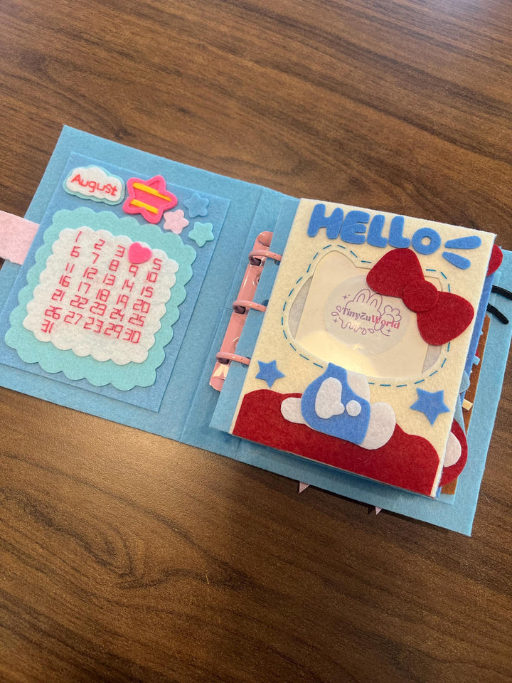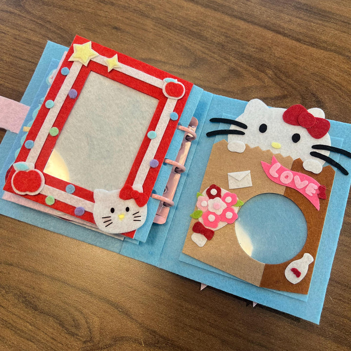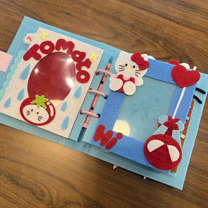 This adorable handmade felt album is perfect for capturing sweet memories in a soft and charming way! Inspired by the cute aesthetic of Japanese characters, this scrapbook features a pink bow cat design, pastel colors, and delicate felt details – all sewn and crafted by hand.
