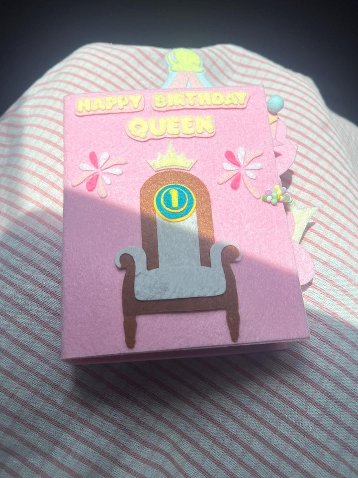 Crafted with love and attention to detail, this royal-themed album features soft, high-quality felt and charming decorative elements like a crown, gems, and embroidered accents – perfect for girls who love all things regal and cute!